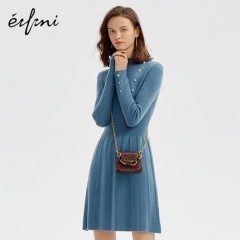 伊芙丽女装2019新款潮冬装裙子半高领100%羊毛高腰长袖针织连衣裙