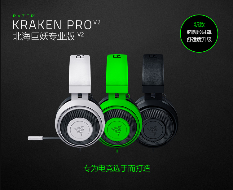 Razer/雷蛇 北海巨妖专业版V2 Kraken Pro 电竞游戏耳麦 耳机