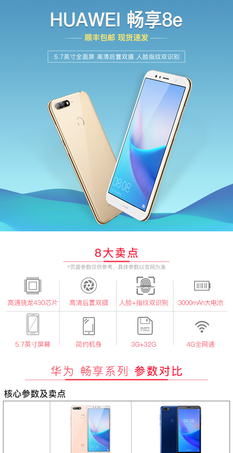 商品名称:435元起Huawei/华为 畅享8e 华为官方旗舰店官网正品手机荣耀畅玩畅享8e青春版学生直播学习上课做题手机