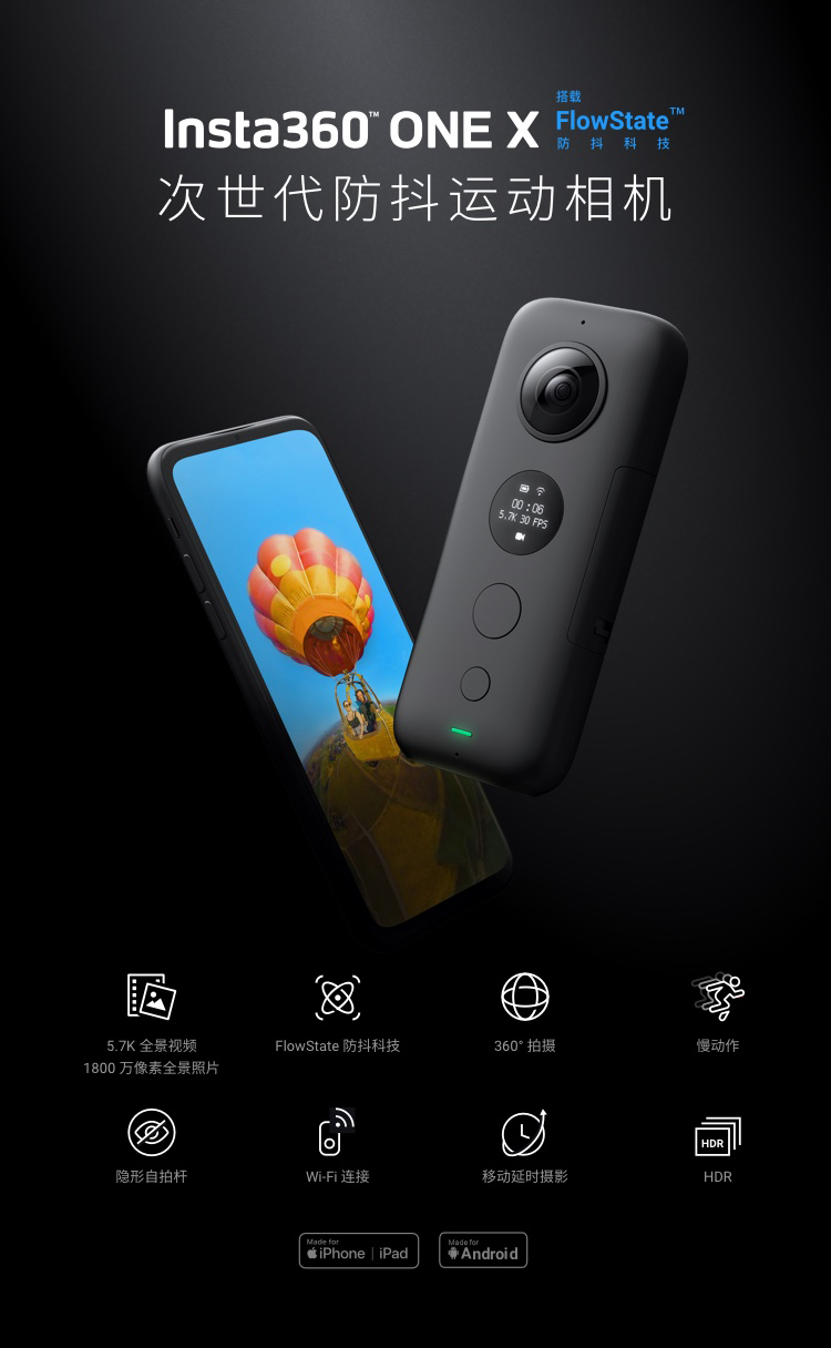 商品名称:Insta360 one x运动全景相机水下VR直播智能数码高清vlog摄像机