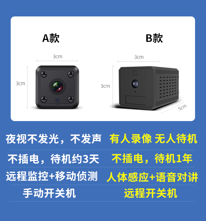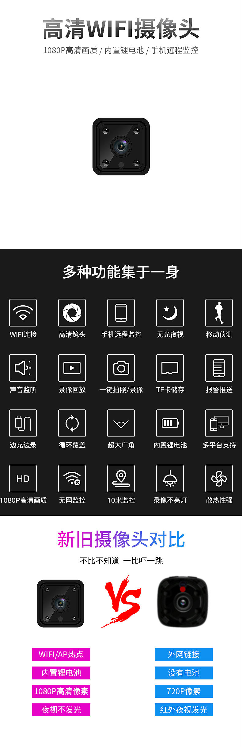 商品名称:无线微小型mini网络摄像头高清夜视连手机远程监控器家用免插电迷