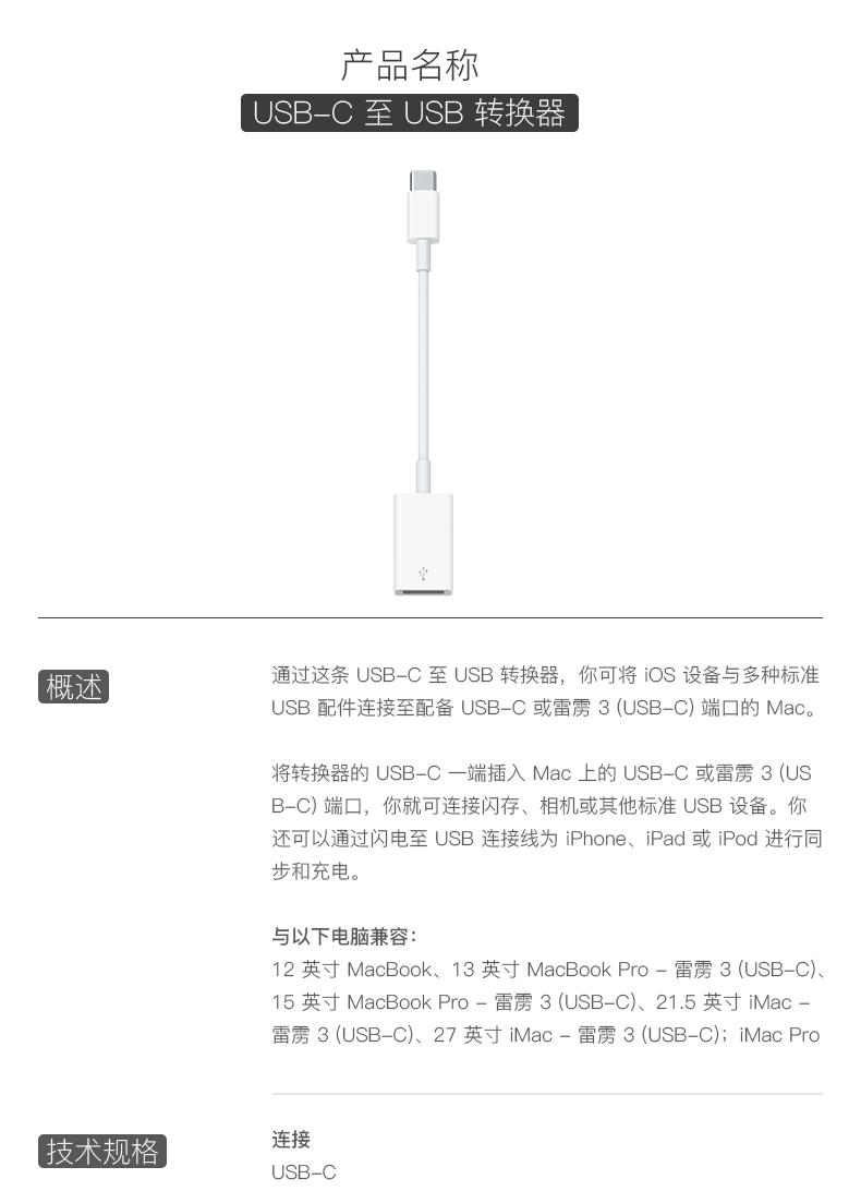 商品名称:Apple苹果 Mac配件 USB-C 至 USB 转换器 Mac Book 原装正品国行