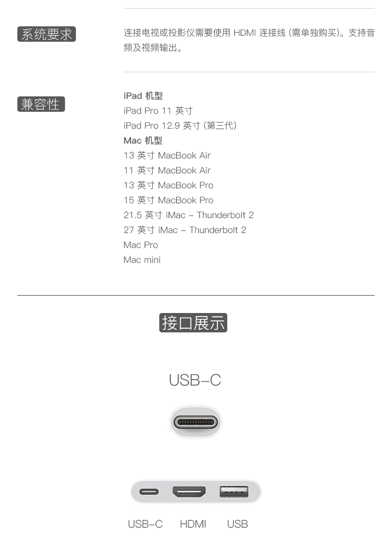 商品名称:Apple苹果 正品 Mac配件 USB-C 数字影音多端口转换器Mac Book
