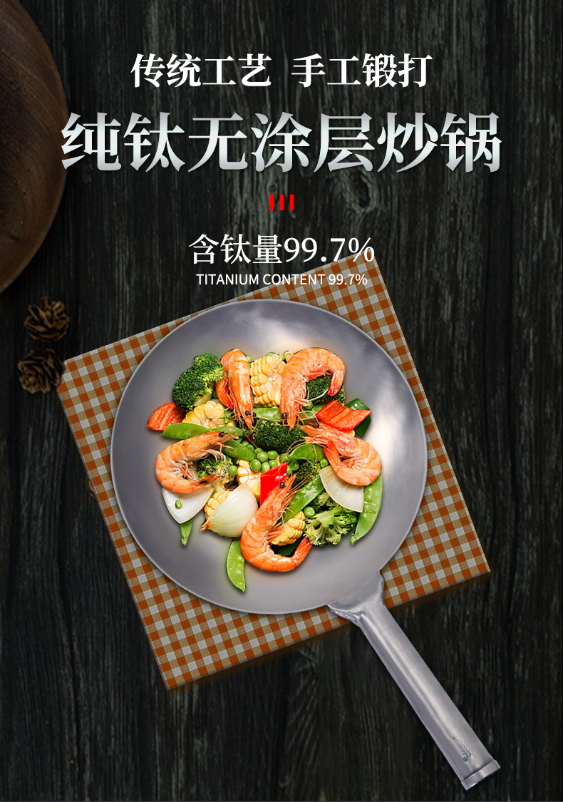 商品名称:卢记厨具钛锅纯钛家用不粘锅炒锅轻便无涂层炒菜锅燃气灶适用圆底