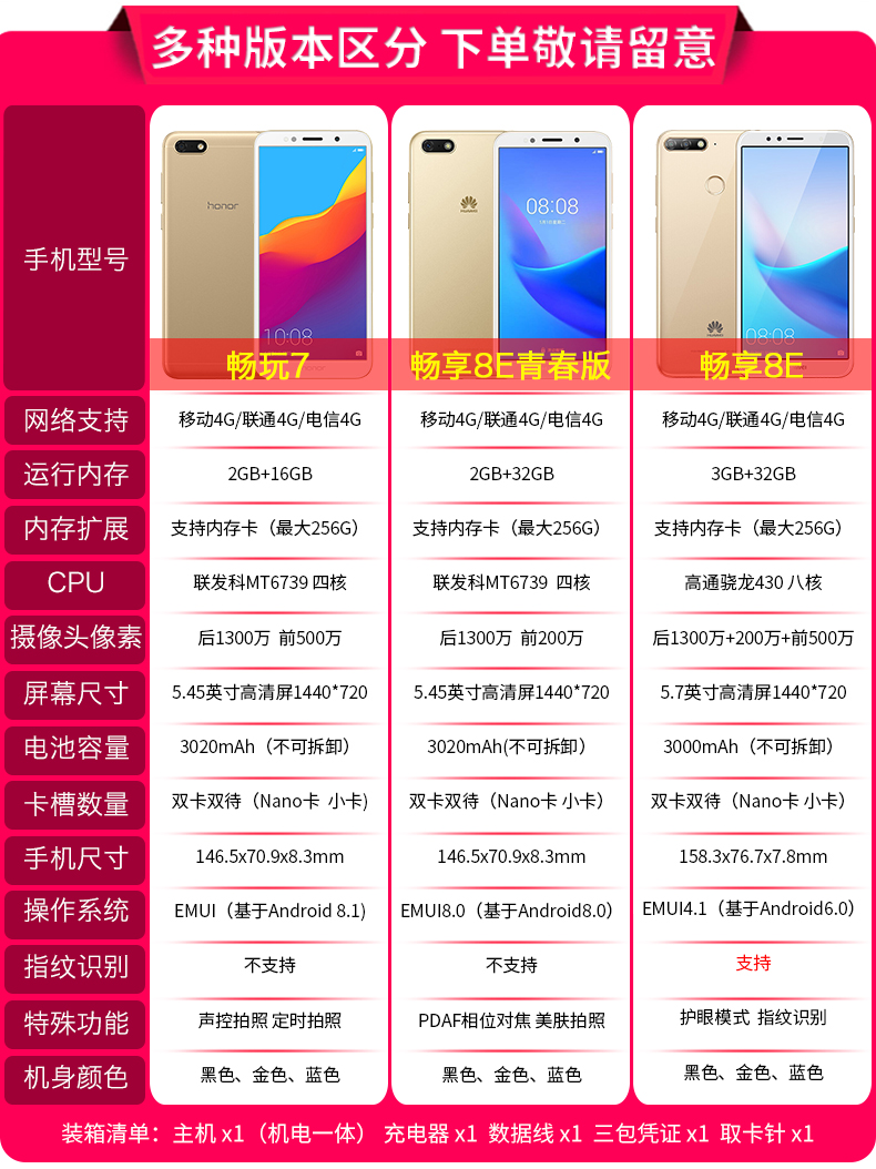 商品名称:435元起Huawei/华为 畅享8e 华为官方旗舰店官网正品手机荣耀畅玩畅享8e青春版学生直播学习上课做题手机