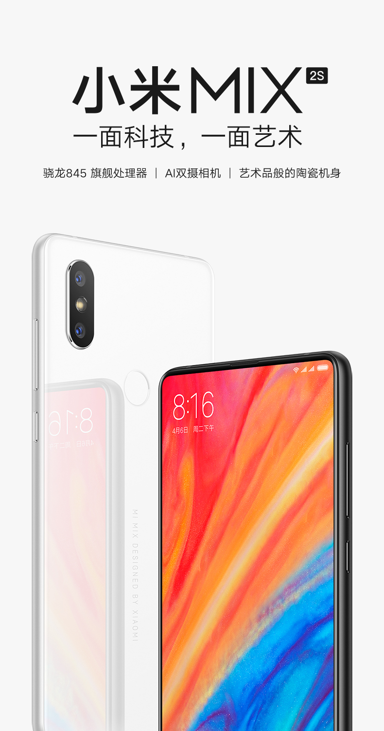 商品名称:小米MIX 2S手机陶瓷机身全面屏游戏拍照手机大屏手机小米官方旗舰店官网正品mix4
