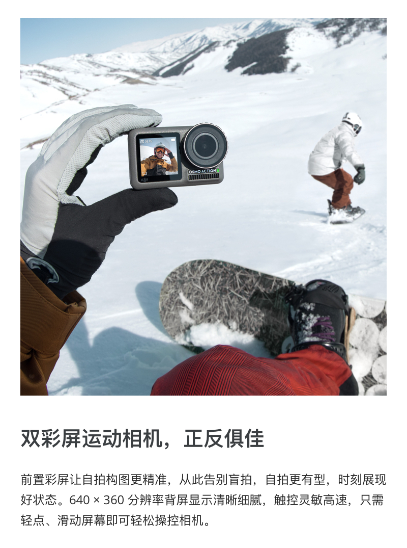 商品名称:DJI 大疆Osmo Action 灵眸运动相机前后双屏防抖防水 vlog摄像机