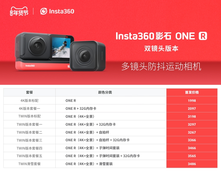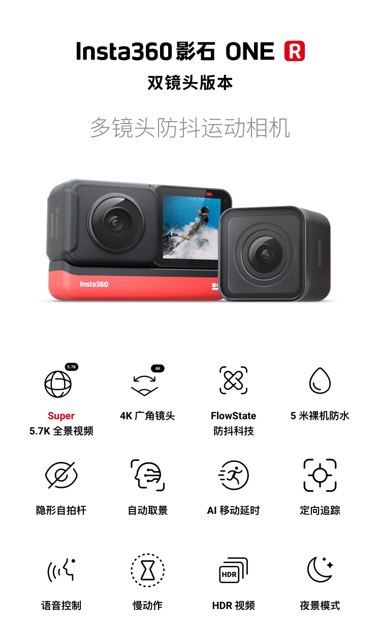商品名称:Insta360 ONE R 高清防抖防水Vlog相机数码摄像机4K+全景运动相机
