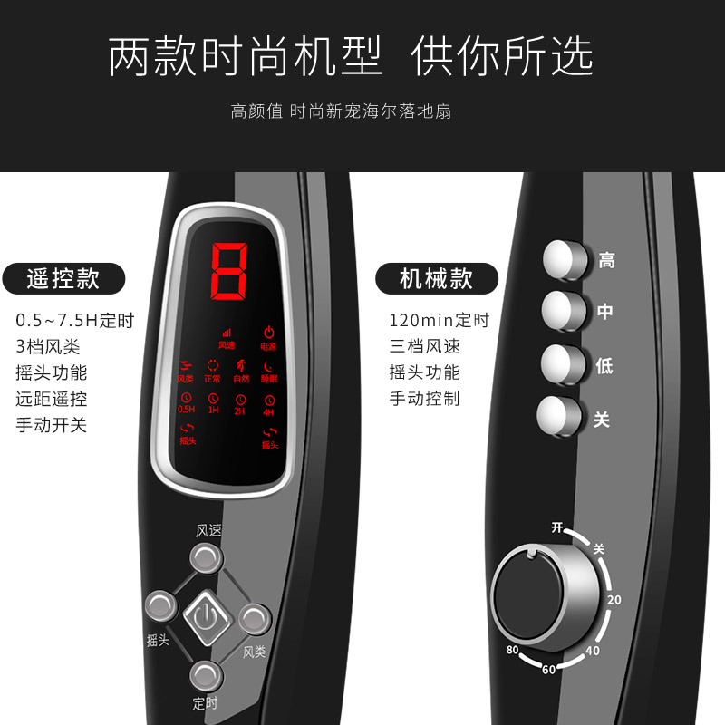 商品名称:海尔落地扇家用电风扇遥控静音 办公室风扇 学生宿舍立式摇头风扇 五叶飓风 全国联保 大风力 超静音