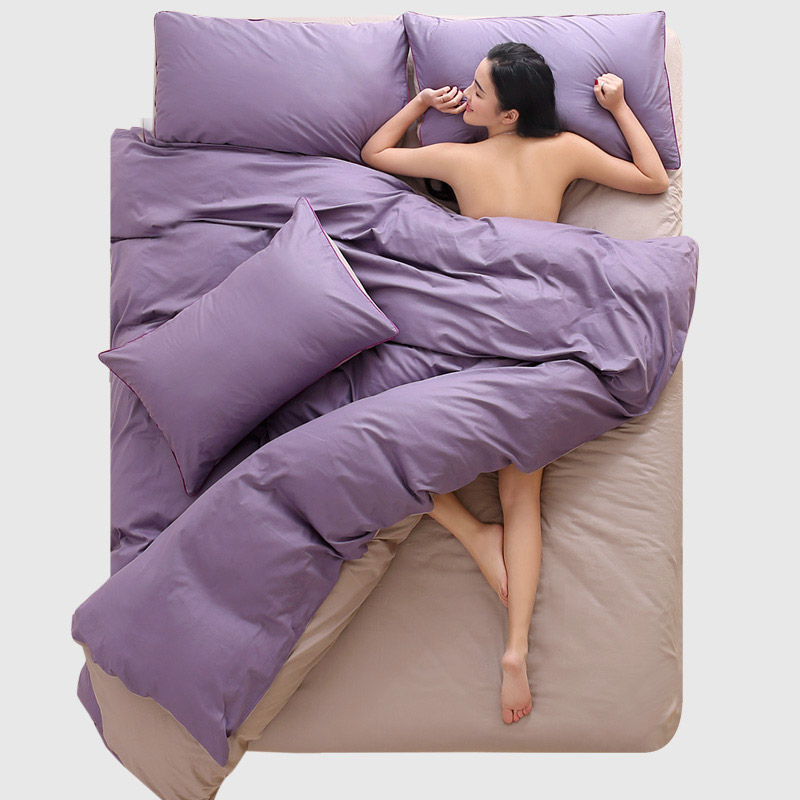 商品名称:简约纯色全棉四件套纯棉4床上用品三件套1.5米1.8m床单被套单床笠 高密优质全棉 零风险抢购 送运费险